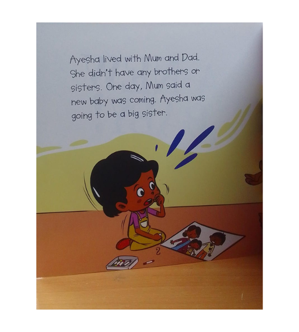 Ayesha’s life was about to change—her mum and dad told her a new baby was coming! At first, Ayesha felt worried and didn’t want things to change. But as the story unfolds, children learn how becoming a big sister brings new love, joy, and responsibilities.