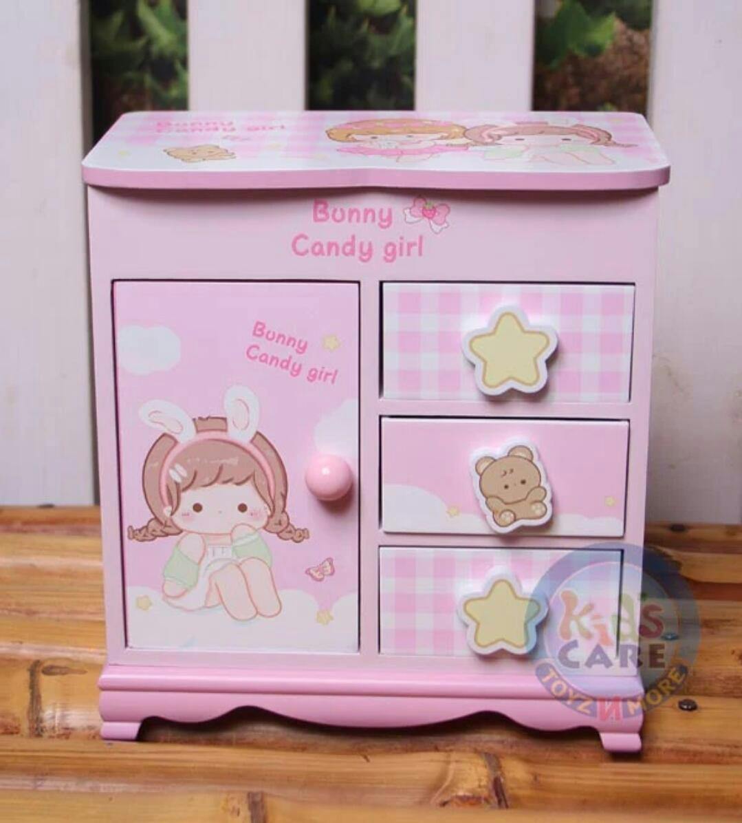 Elevate your little princess's room with our enchanting Bunny Candy Girl themed wooden jewelry organizer. This beautifully crafted piece is designed to keep her precious accessories neatly organized and easily accessible.
