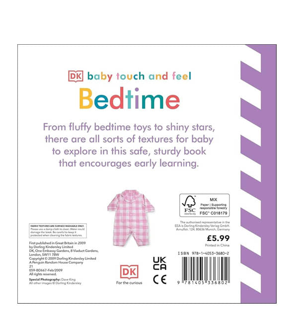 Explore a world of textures with the Baby Touch and Feel Bedtime Board Book! This delightful board book features 12 pages of engaging touch-and-feel elements, perfect for little hands. Sized at a convenient 5.5 x 5.5 inches, it's ideal for baby's grasp. From fluffy bedtime toys to shiny stars, each page offers a new sensory experience to encourage early learning and development. Made with premium quality material, this safe and sturdy book is also wipe and clean, making it perfect for everyday use. Published by the renowned Darling Kindersley Limited, UK. Order your Baby Touch and Feel Bedtime Board Book from Kids Care and enjoy convenient cash on delivery across Pakistan!
