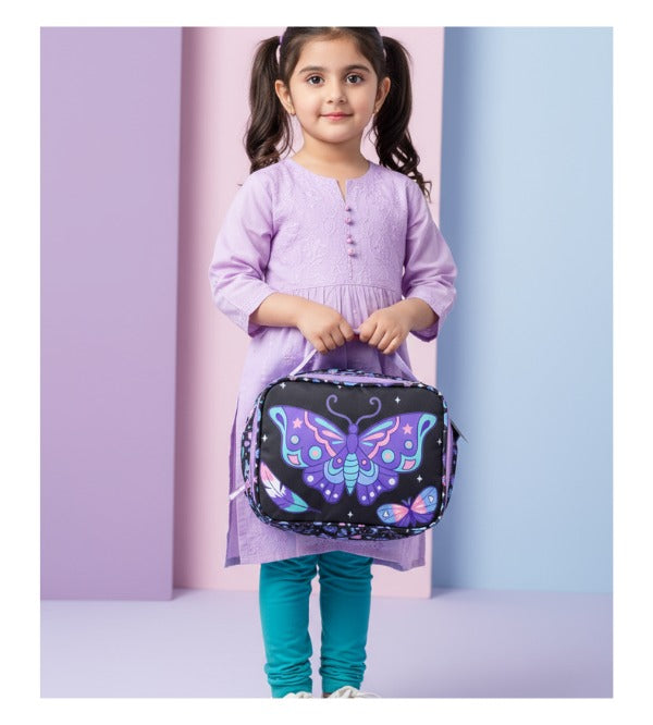 Make lunchtime extra delightful with our Butterfly Design Insulated Lunch Bag, available at Kids Care! This beautiful handbag-style lunch bag is perfect for school, daycare, travel and picnics. Designed in a convenient 9x7 inches size, it offers just the right space for kids’ lunch boxes, snacks and drinks while staying lightweight and easy to carry.