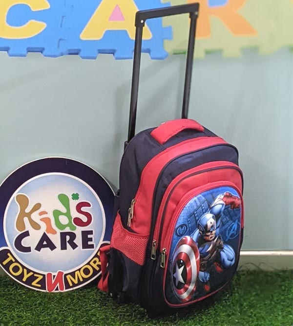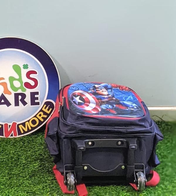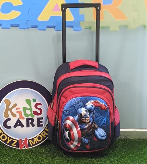 Keywords: Captain America, School Trolley Bag, Grades 1 & 2, Spacious, Durable, Comfortable, Adjustable Straps, School Supplies, Superhero