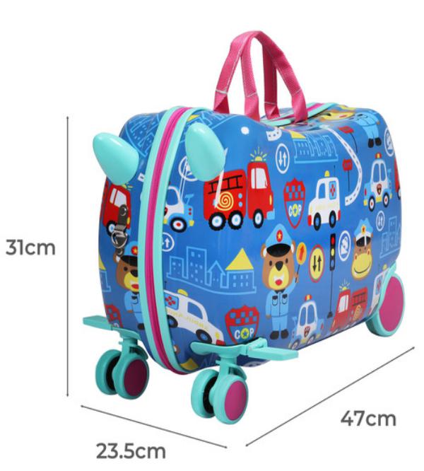 Get your little explorer ready for every adventure with our Cartoon City Police Ride-On Suitcase for Kids, available exclusively at Kids Care! Designed to make travel fun, this innovative ride-on trolley suitcase lets children sit, ride, and pull themselves, turning boring airport waits into exciting playtime.