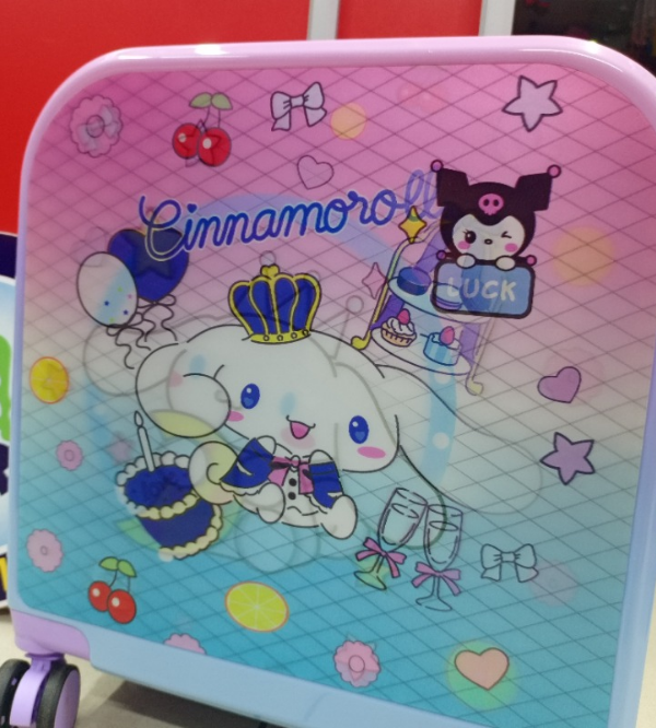 Travel becomes even more delightful with our Cinnamoroll Kids Travel Suitcase in Purple, now available at Kids Care Pakistan! This adorable trolley bag showcases a 3D lenticular image of Cinnamoroll, Sanrio’s cute white puppy, which magically changes when viewed from different angles — giving it a fun and dreamy look that kids adore.