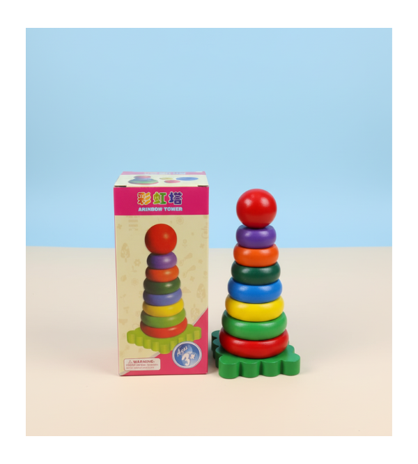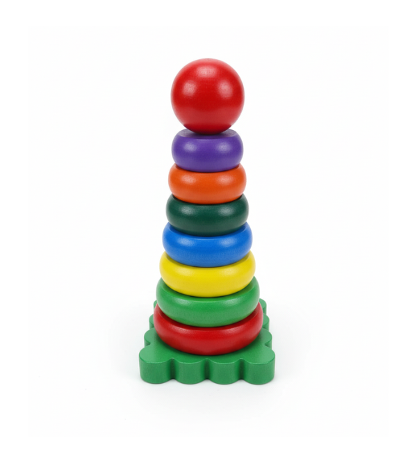 Colorful Wooden Rainbow Tower Stacking Toy – 7 Colorful Rings for Kids (1–3 Years)