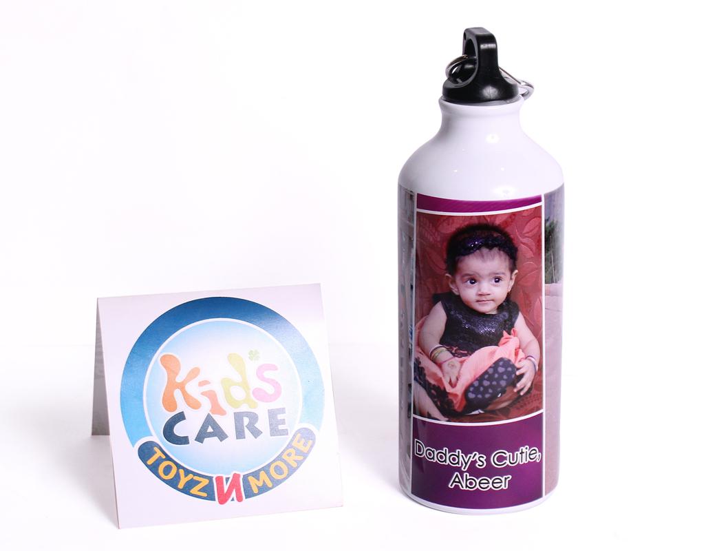 Looking for a unique and personalized way to keep your child hydrated? Look no further than Kids Care's Customized Metallic Water Bottle! This 600 ml bottle is the perfect size for little hands and adventures, and it can be customized with any picture, name, or message you want!