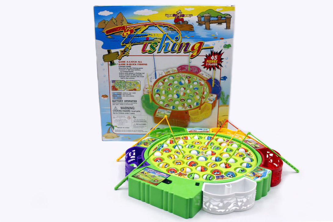 - Turn Base On to Begin Game · Base Will Begin to Rotate and Play Music As the Fishes Open and Close Their Mouth and Wiggle Their Tail Fins · Battery Operated
