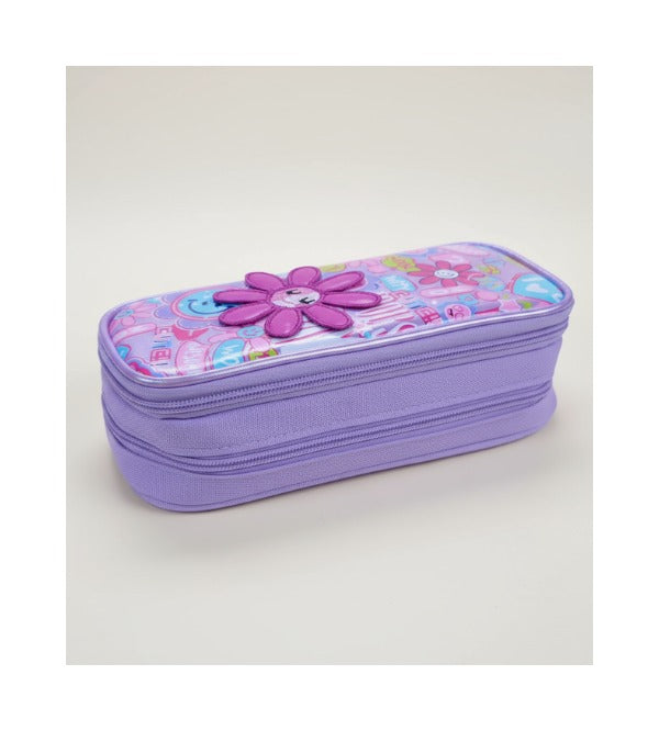 Floral Printed Stationery Pouch – Two Compartments, Premium Quality, Available in Pink, Purple & Green (9021)