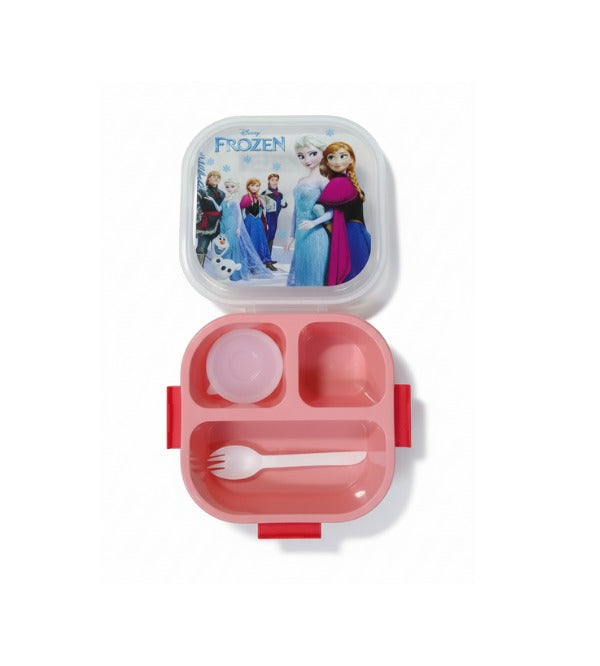 Frozen Anna & Elsa Themed Three Portion Lunch Box with Spoon & Sauce Container – 7x7 Inches (9001)