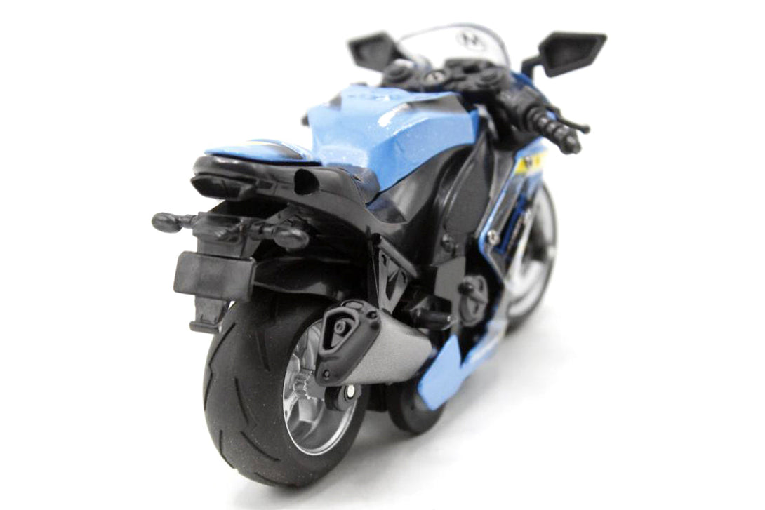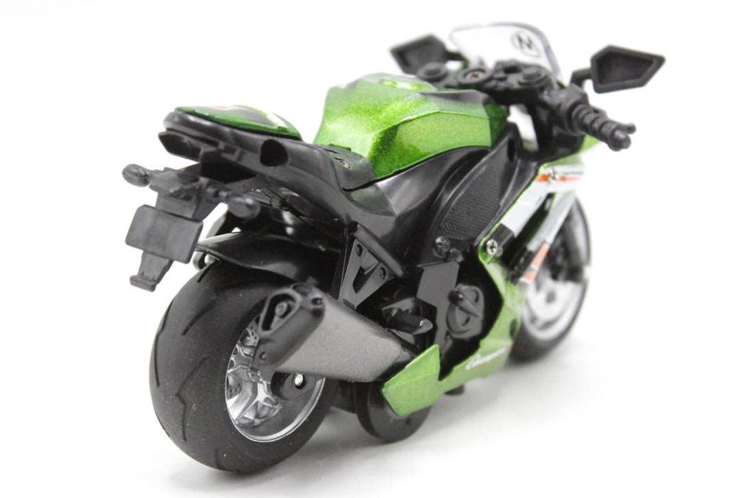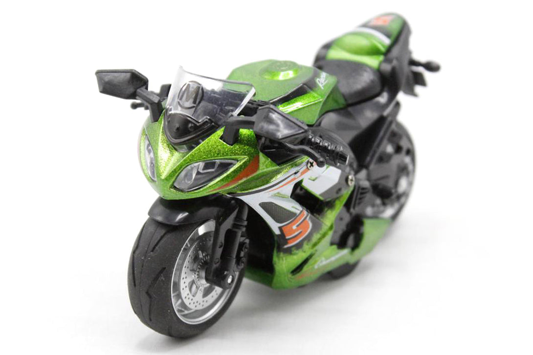 This motorcycle toy is crafted from durable die-cast metal with a high-gloss finish, providing a realistic look and feel for children. Featuring a powerful pull-back motor, realistic engine sounds, and dazzling LED lights, this motorcycle is sure to excite and entertain young riders.