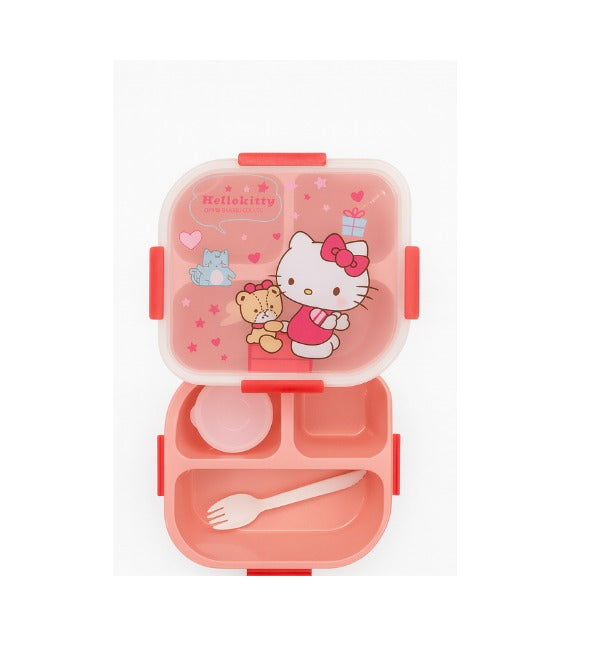 Hello Kitty Themed Three Portion Lunch Box with Spoon & Sauce Container – 7x7 Inches (9001)