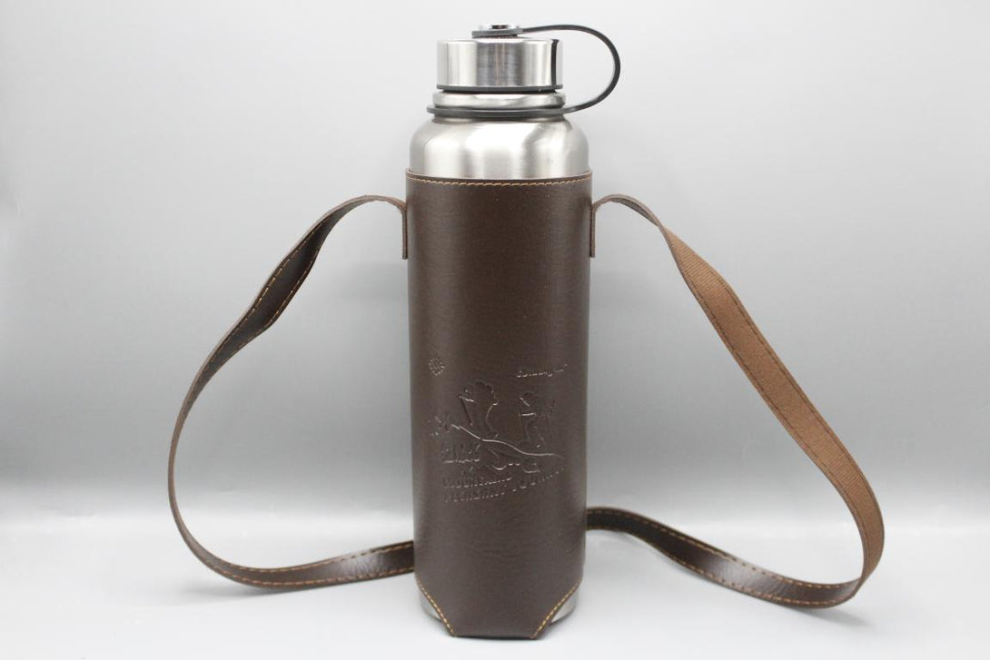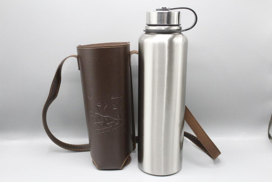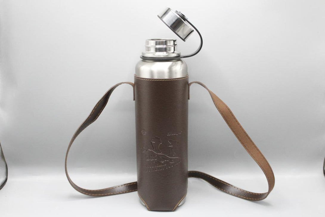 High Quality Metallic Thermal Water Bottle With Leather Cover 1500 ml Silver (DWX-5096)