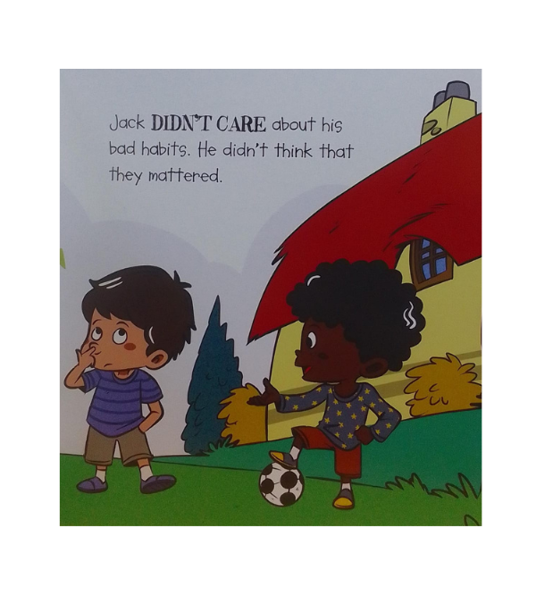 Jack had some bad habits. He bit his fingernails, picked at his scabs, and even picked his nose. Jack didn’t think these habits mattered—but as the story continues, children discover why breaking bad habits is important for health, confidence, and manners.