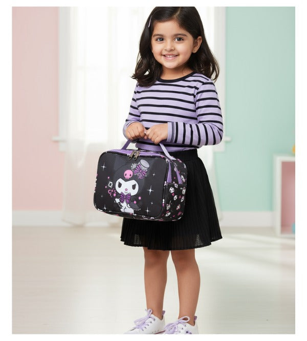 Add a touch of cute attitude to your child’s mealtime with our Kuromi Design Insulated Lunch Bag, exclusively at Kids Care! This stylish handbag-style lunch bag is perfect for school, daycare, picnics and travel. With a convenient 9x7 inches size, it provides ample space for lunch boxes, snacks and drinks while staying compact and easy to carry.