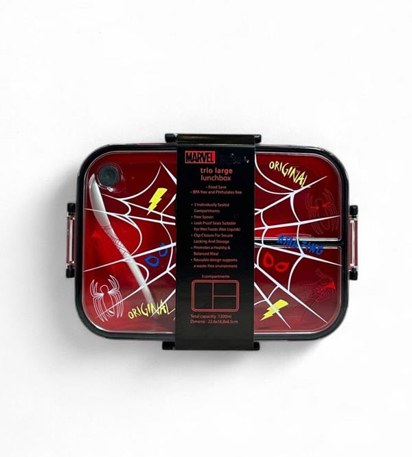 Swing into action at lunchtime with the Marvel Spider-Man Three Portion Lunch Box, now available at Kids Care! Featuring the iconic Spider-Man design, this superhero-themed lunch box is perfect for young fans who love adventure and heroism.