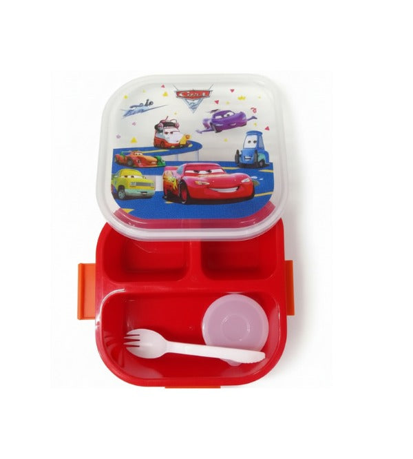 McQueen Car Themed Three Portion Lunch Box with Spoon & Sauce Container – 7x7 Inches (9001)