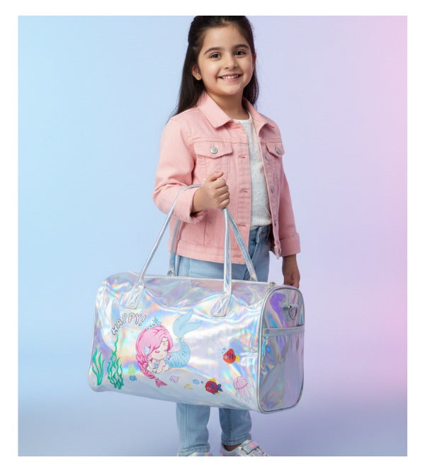 Make every trip magical with our Mermaid Holographic Duffel Bag, exclusively available at Kids Care! Designed with a stunning holographic mermaid theme, this bag shines and shimmers beautifully under the light — a perfect choice for little mermaid lovers who adore sparkle and style.