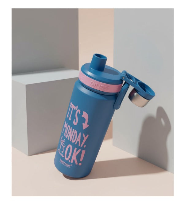 Metallic Blue Thermal Water Bottle 700ml with Spout & Strainer – “It’s Monday, But It’s OK” (YTF-128)