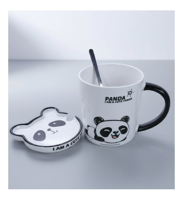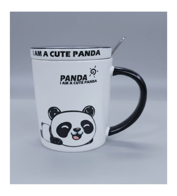 Panda Ceramic Mug with Cute Panda Face Lid & Spoon – White & Black (KS9529)