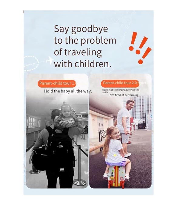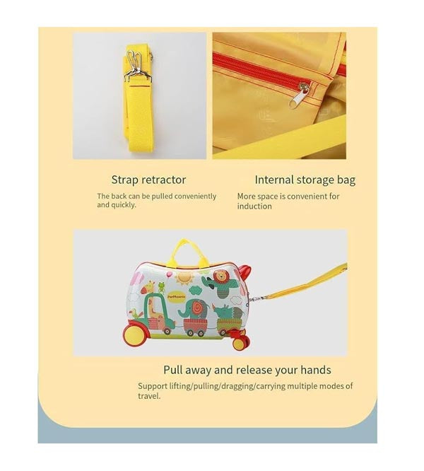 🌈 Function: Ride-on suitcase – kids can sit, ride, or pull easily