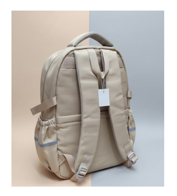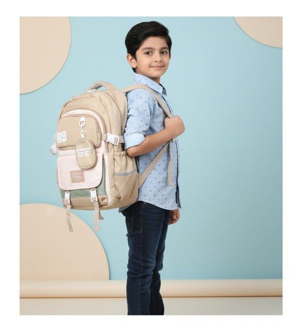 Crafted with attention to detail, this stylish beige backpack features premium quality zippers, durable material, and strong stitching. The comfortable, padded, adjustable back straps ensure easy carrying throughout the day, making it an ideal choice for both school and travel.