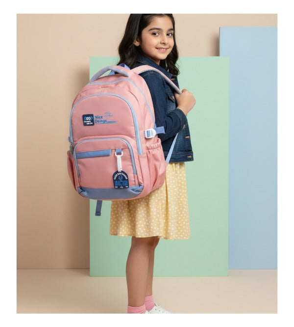 Premium Pink School Bag & Travel Backpack – 18-Inch “Nice Doings” Stylish Backpack