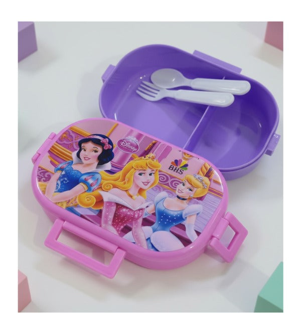 Princess Themed 7.5x5 Inch Two Portion Lunch Box with Spoon, Fork, and Four Side Locks - Free Cash on Delivery Nationwide