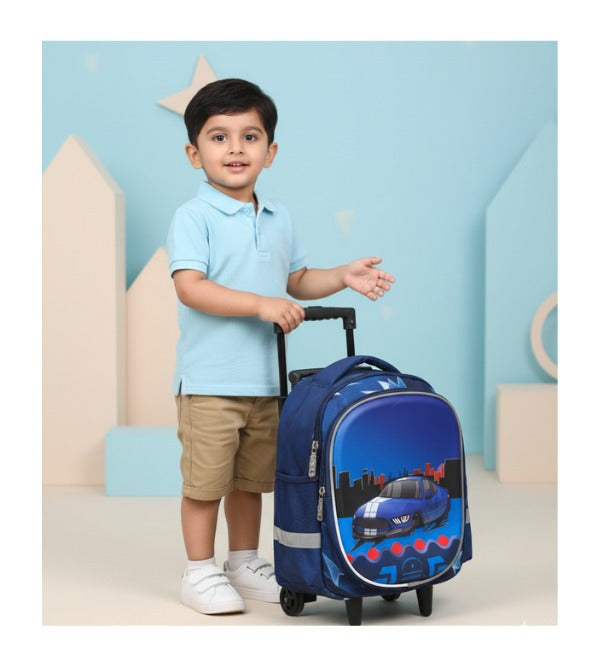 Racing Car Themed Small Trolley Bag for Playgroup | Blue (HSD-2512)