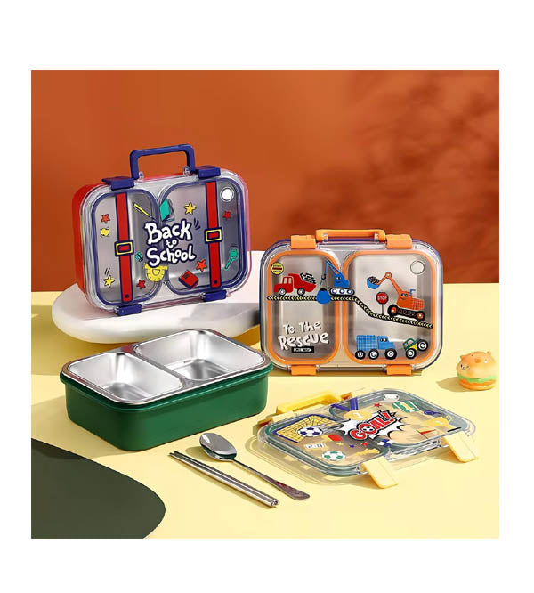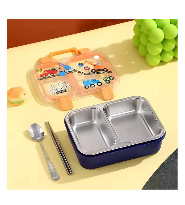 Rescue Car Stainless Steel Lunch Box for Kids – 2 Sealed Portions | 700ml | With Spoon & Chopsticks (LX-7155)