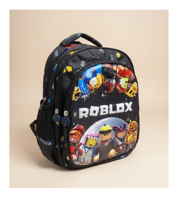 Crafted from durable and washable material, this high-quality school bag features a bold 3D Roblox-themed design that kids love. It offers excellent storage capacity with one main compartment, two small front compartments, and two side pockets — ideal for carrying books, lunch boxes, snacks, water bottles, and daily school essentials.