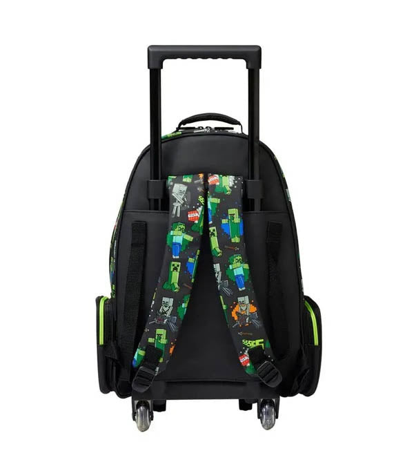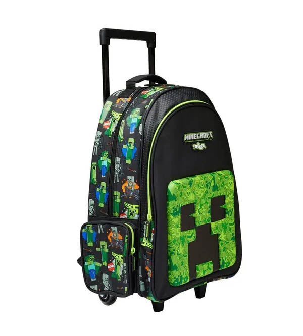 This Minecraft-themed trolley bag includes a large main compartment, a small compartment, a front small pocket, and two side pockets, offering plenty of room for books, stationery, lunch, water bottles, and other items young adventurers need.