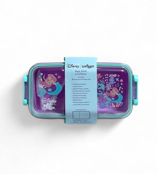 Smiggle Mermaid Duo Mini Lunch Box – 2 Sealed Compartments, Leak Proof, 600ml (SM256997)