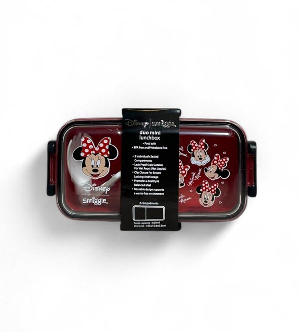 Smiggle Minnie Mouse Duo Mini Lunch Box – 2 Sealed Compartments, Leak Proof, 600ml (SM256997)