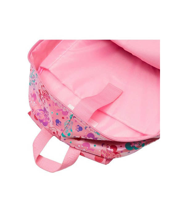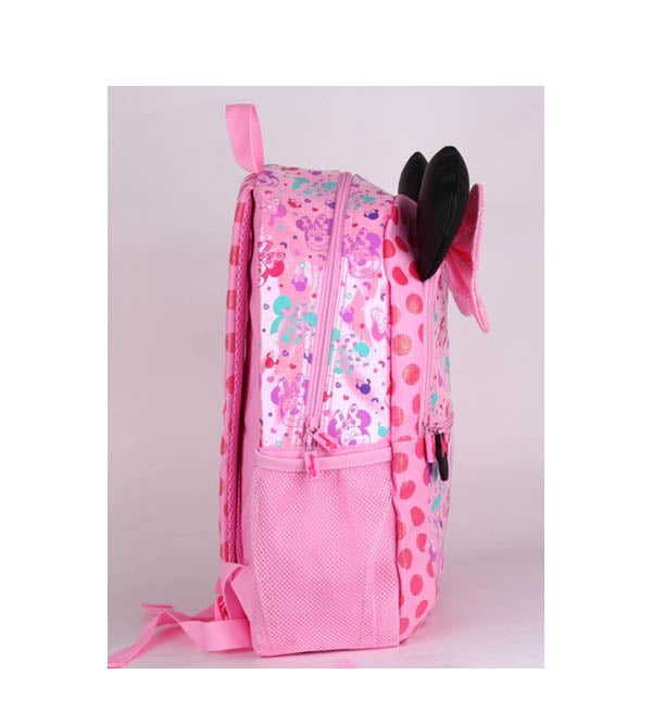 Whether used as a school bag or a kids’ travel backpack, this Minnie Mouse bag is designed with functionality in mind. It features a roomy main compartment for books, lunch boxes, and school essentials, a handy front pocket for smaller items, and two side pockets ideal for bottles or small accessories.