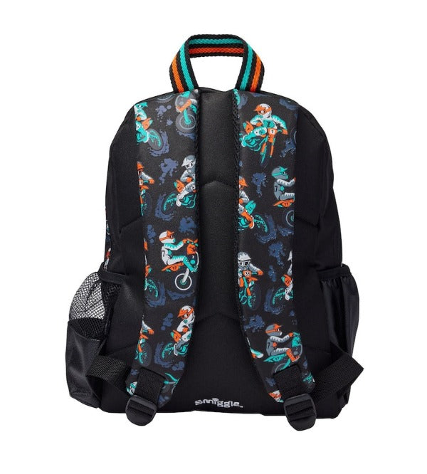 Smiggle Motocross Rider Junior Kids Backpack – 14 Inch School & Travel Bag with Water Bottle Pockets (326990)