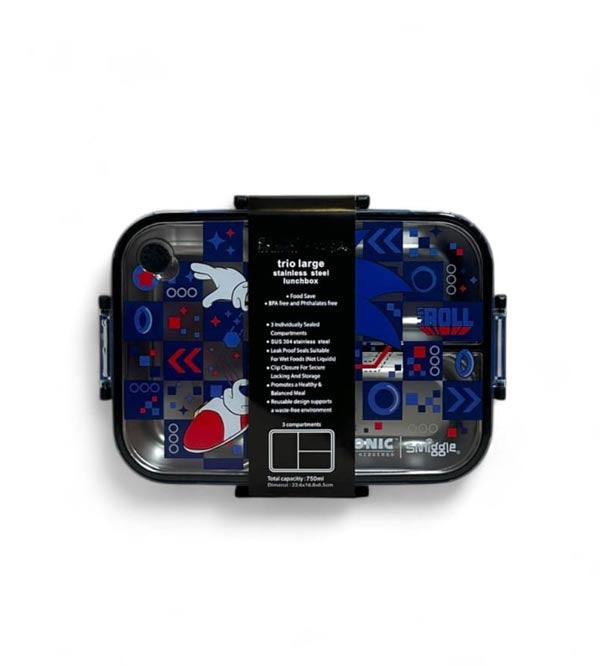 Speed through lunchtime with the Smiggle Sonic The Hedgehog Three Sealed Portion Stainless Steel Lunch Box — the perfect combo of fun design and premium quality! Made from SUS 304 food-grade stainless steel, this durable lunch box keeps your child’s meals fresh, hygienic, and tasty all day long.