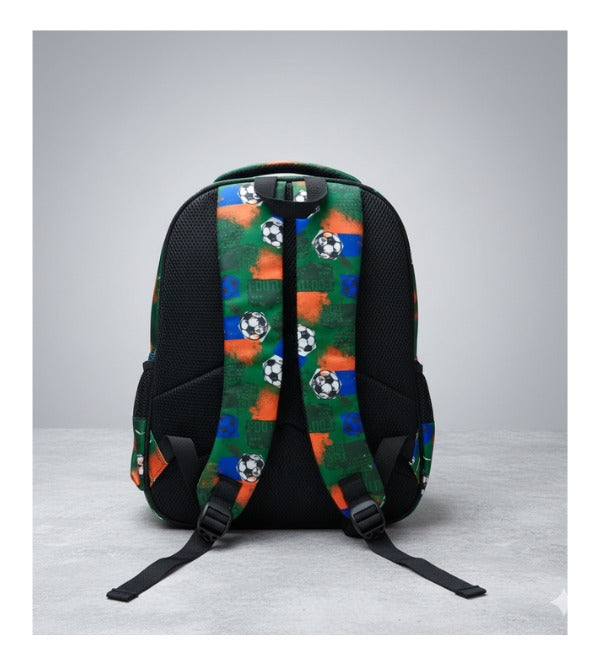 Built from high-quality, durable, and washable material, this football-themed backpack is made to handle daily school use with ease. It comes with one spacious main compartment, one small compartment, two front pockets, and two side pockets — offering plenty of storage for books, notebooks, lunch boxes, stationery, and a water bottle.
