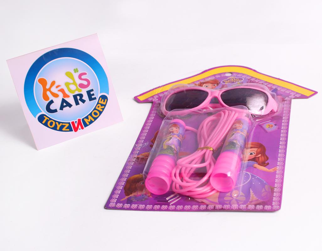 Introducing the Kids Care Cartoon Character Themed Skipping Rope and Sunglasses Set for Kids!