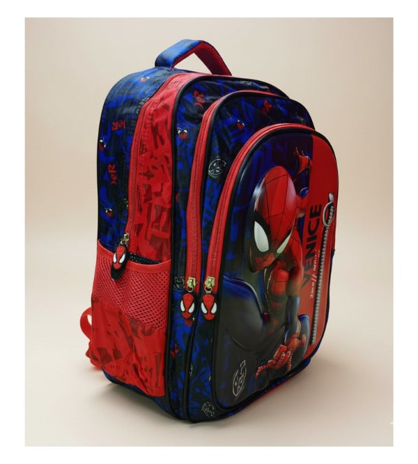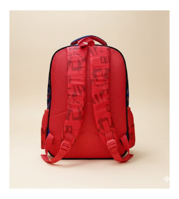 Featuring a bold 3D Spider-Man design, this bag stands out with its vibrant colors and high-quality finish. It includes one spacious main compartment, two small compartments, and two side pockets, providing ample space for books, notebooks, lunch boxes, stationery, and a water bottle. Made from durable, washable material, this Spider-Man backpack is built to last and easy to clean — ideal for daily school use or travel.