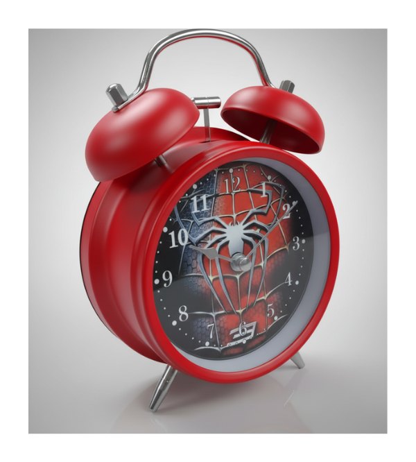 Featuring a bold Spider-Man design, durable metallic body, and a classic twin bell alarm, it ensures you wake up right on time — superhero style! Perfect for kids and fans of the Marvel universe, this alarm clock adds a fun and energetic touch to any bedroom.