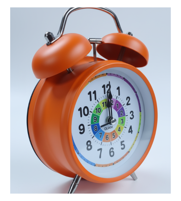 Bright Orange Twin Bell Alarm Clock for Kids – Colorful Learning Timepiece with Loud Ring