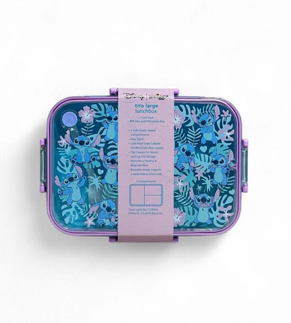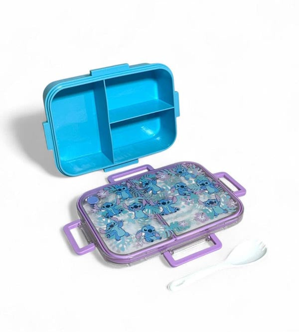 Stitch Theme 3 Portion Lunch Box – 1200ml Leak-Proof, BPA Free Kids Lunch Box with Spoon (SM254098)