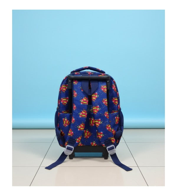 Kids Care Superman Themed Small Trolley Bag for Kids (Blue & Red)