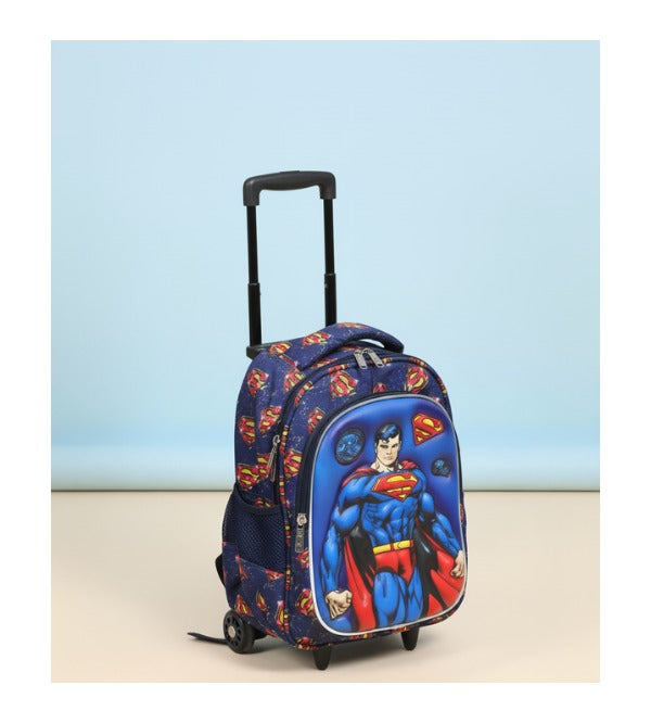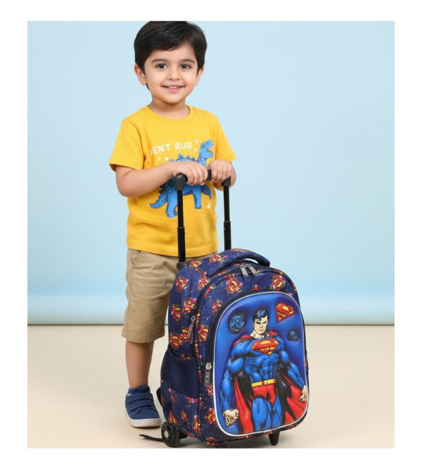 Superman Themed Small 3D Trolley Bag for Playgroup | Blue (HSD-33012)