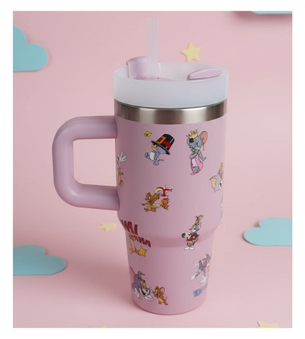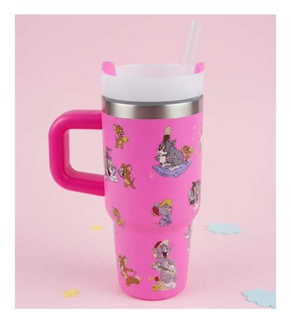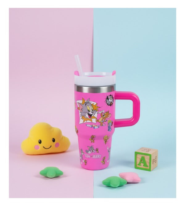 Tom & Jerry Insulated Tumbler with Handle & Straw – 20oz (590ml) Double-Wall Stainless Steel Cup for Girls (TS3370)