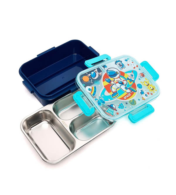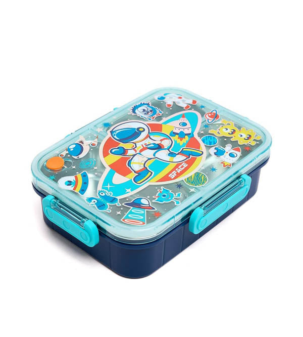 The colorful astronaut and space-themed design inspires imagination and joy, while four sturdy side locks keep the lid tightly sealed to prevent spills and leaks. Measuring 6.5 x 8.5 inches, it’s spacious enough for a complete meal yet compact enough to fit neatly in school bags.