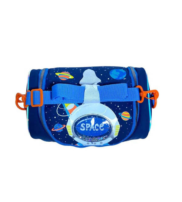 This premium quality insulated lunch bag is perfect for kids who love outer space! The bag features a fun and colorful astronaut space world design, and is made from durable, washable material. The lunch bag has two compartments to keep your child's food and snacks organized, and is insulated to keep food and drinks cold or hot. The bag also has one handle and one adjustable and detachable cross body strap for easy carrying.