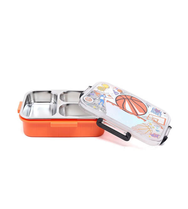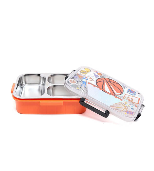 The vibrant basketball design inspires sporty fun, while four sturdy side locks ensure the lid stays securely fastened. Measuring 6.5 x 8.5 inches, it offers just the right space for a full meal and fits easily inside any school bag.