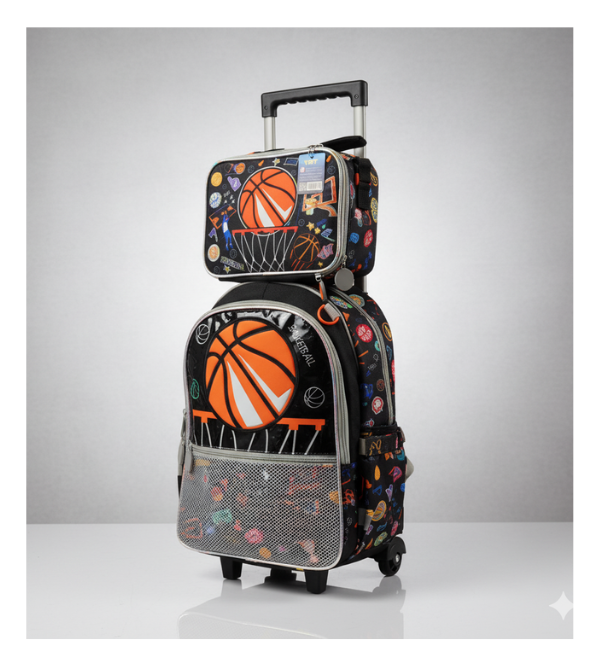 Vest Brand Basketball Trolley School Bag Set with Matching Insulated Lunch Bag – Premium Kids Travel & School Set | Grade 1–5 (U2116)