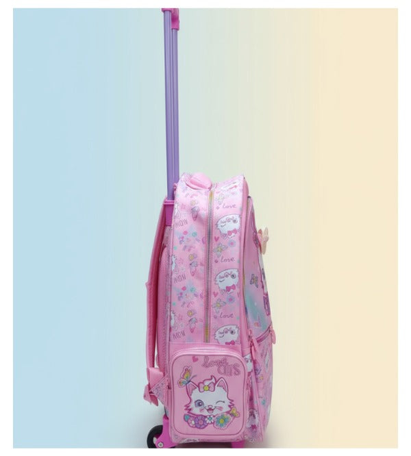 Vest Brand Cute Cat School Trolley Bag for Kids – Grade 1 to 3 | Durable & Spacious Rolling Backpack (U2113)