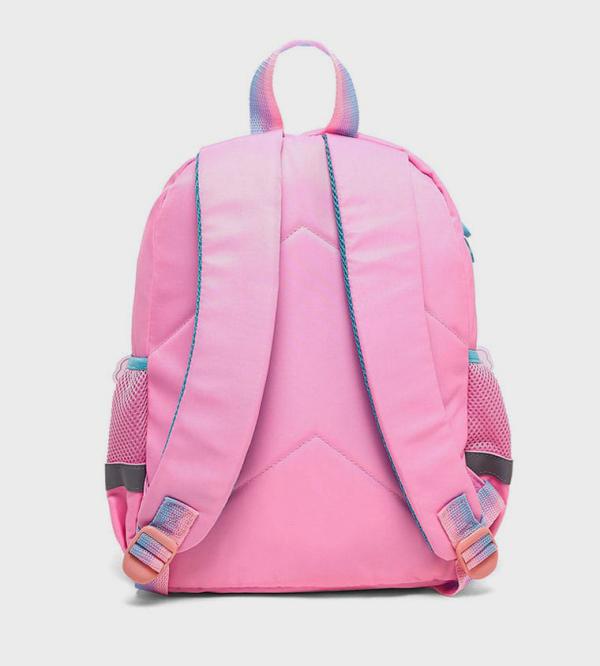 The backpack includes a main compartment, a small front pocket, and two side pockets, providing plenty of space for books, stationery, and snacks. It also offers a unique name customization feature – multiple alphabet cutouts can be placed in the front pocket, allowing your child to personalize their bag for a truly magical touch.